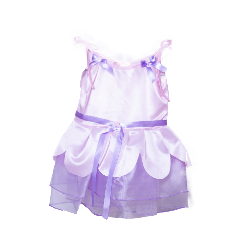 Características del producto: Contiene un vestidito rosado con detalles lilas