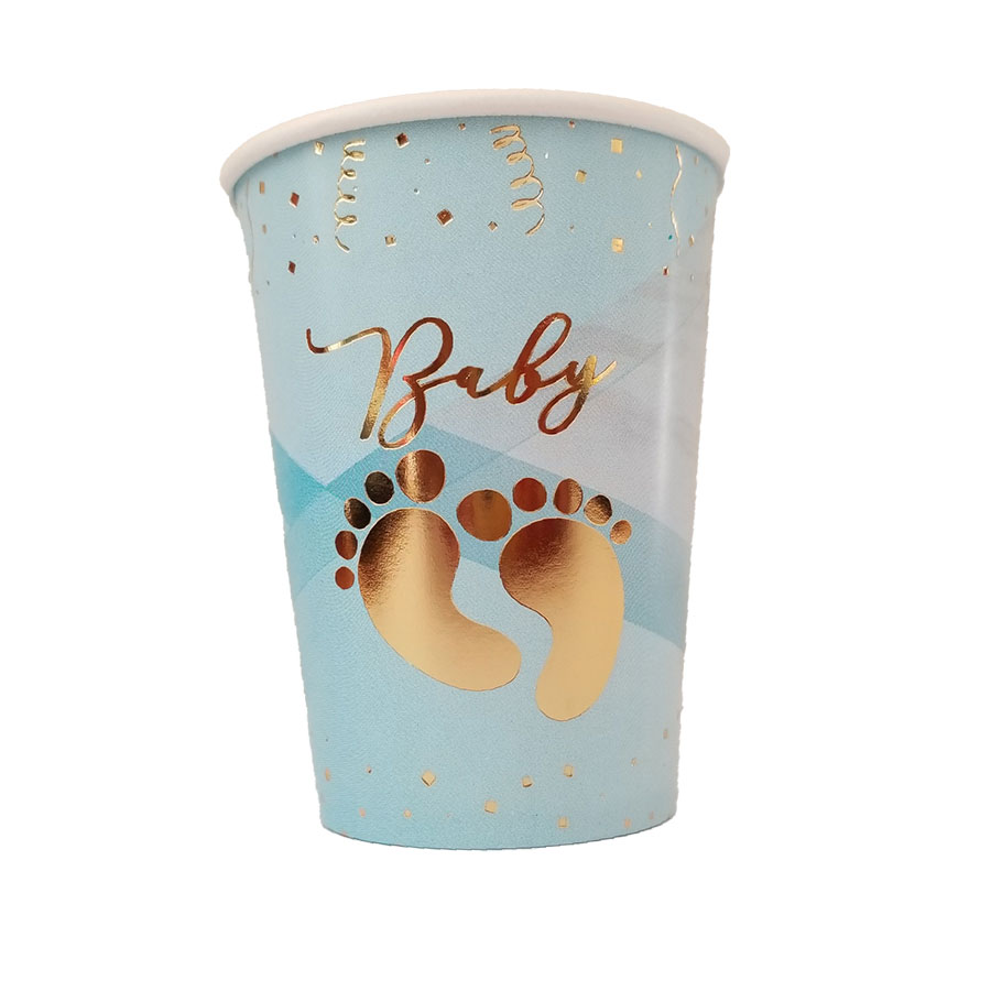 Diseñados en un tono celeste pastel encantador, estos vasos combinan a la perfección con temáticas de bebé, cielo, animalitos o cualquier decoración suave y elegante. Además, están hechos de polipapel resistente, por lo que son aptos tanto para bebidas frías como calientes.