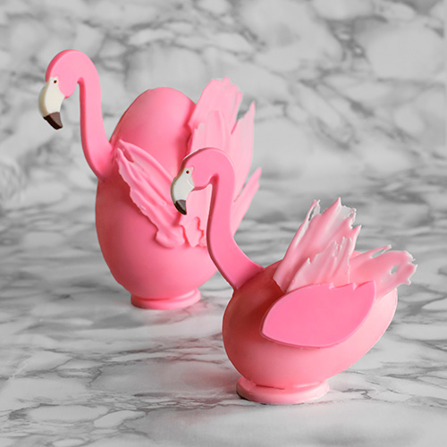 Incluye 2 moldes placas para realizar 1 “huevo flamenco” de 10 cm.