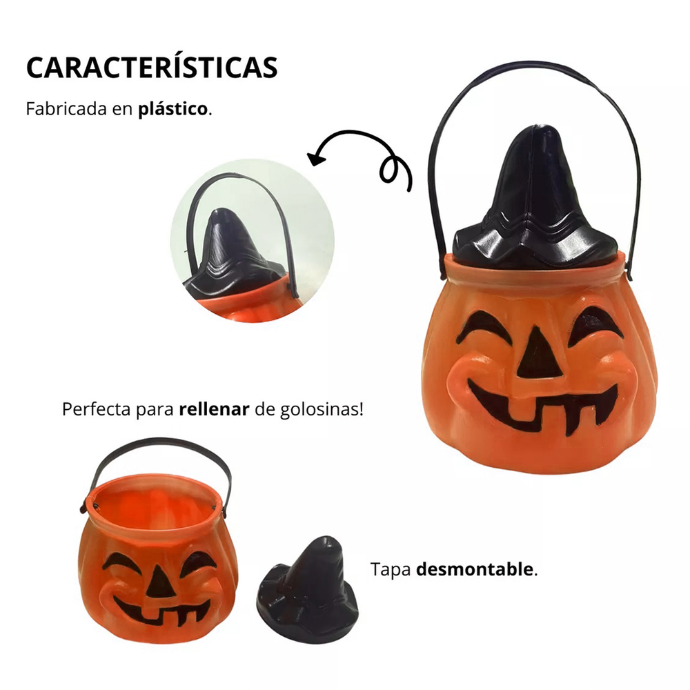 Esta Calabaza Caramelera Naranja con Tapa es el accesorio perfecto para llenar tu hogar de dulzura y encanto durante la temporada de Halloween. No solo es una pieza decorativa divertida para tu hogar, sino que también es un contenedor ideal para tus golosinas favoritas. Celebra Halloween de una manera única y deliciosa con esta hermosa calabaza.