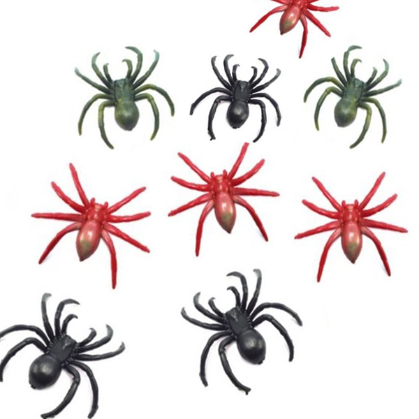 Variedad de Colores: Este set incluye 12 arañitas de plástico en una variedad de colores brillantes y llamativos.