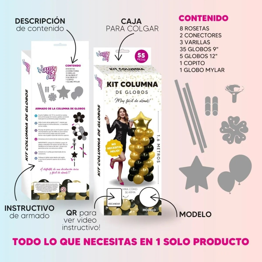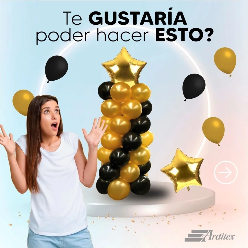 Decorá con todo el glam tu fiesta: La columna de globos puede medir metro y medio aproximadamente y queda divina para sacarse fotos y decorar tus espacios.