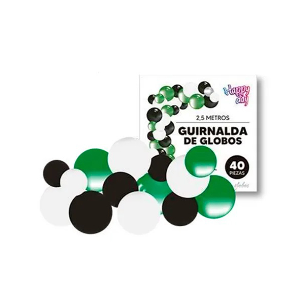 ¿Tenés un fanático del fútbol en casa y querés que su fiesta sea un verdadero golazo? La Guirnalda de Globos Fútbol de 40 piezas es la opción ideal para darle a tu evento esa vibra deportiva y festiva que solo el fútbol puede generar. Con globos en blanco, negro y verde, esta guirnalda transforma cualquier espacio en una cancha llena de alegría.