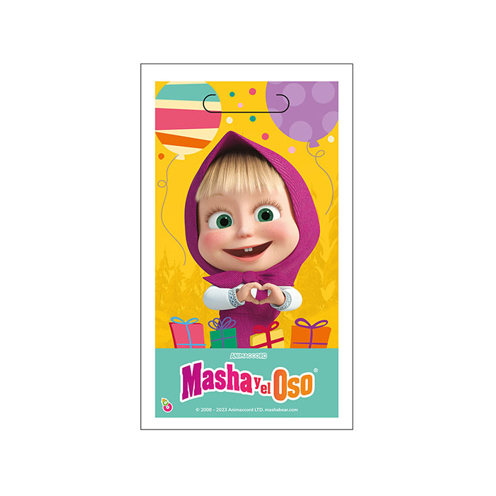 El Pack de Bolsitas Sorpresa Masha y el Oso x 10 es perfecto para añadir un toque especial a las fiestas de tus pequeños. Decoradas con los encantadores personajes de Masha y el Oso, estas bolsitas son ideales para repartir golosinas y pequeños regalos a los invitados. Cada bolsa es lo suficientemente espaciosa para incluir una variedad de sorpresas, haciendo que cada niño se lleve a casa un recuerdo memorable de la fiesta.
