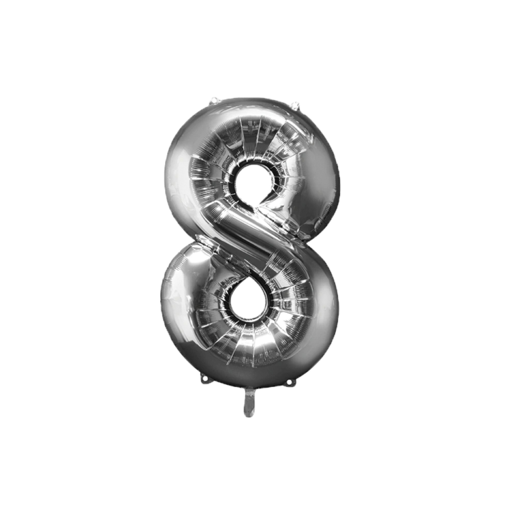 1 Globo metalizado de número plateado de 80 cm. (n° a elección).