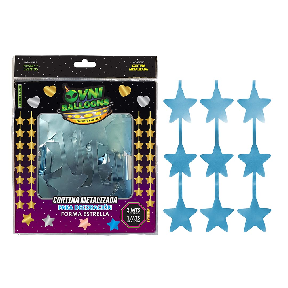 Decora con estilo y encanto tus celebraciones con nuestra Cortina Metalizada Estrellas Celestes Cromo. Con dimensiones de 1 x 2 metros, esta cortina es perfecta para crear un fondo vibrante y festivo en cualquier fiesta. Fabricada con material plástico de alta calidad, esta cortina es resistente y fácil de colgar. Su tono delicado añade un toque de dulzura a cualquier evento.