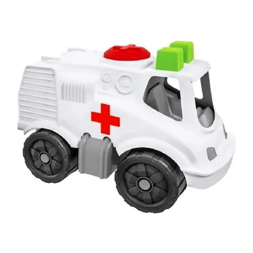 Es un vehículo de emergencia de juguete, compacto y liviano, pensado para manos pequeñas. Representa una ambulancia del cuerpo de bomberos, con detalles visuales como luces, ruedas grandes y stickers alusivos. Pertenece a la clásica línea de juguetes Duravit, una marca argentina líder en juguetes de plástico durables y seguros.