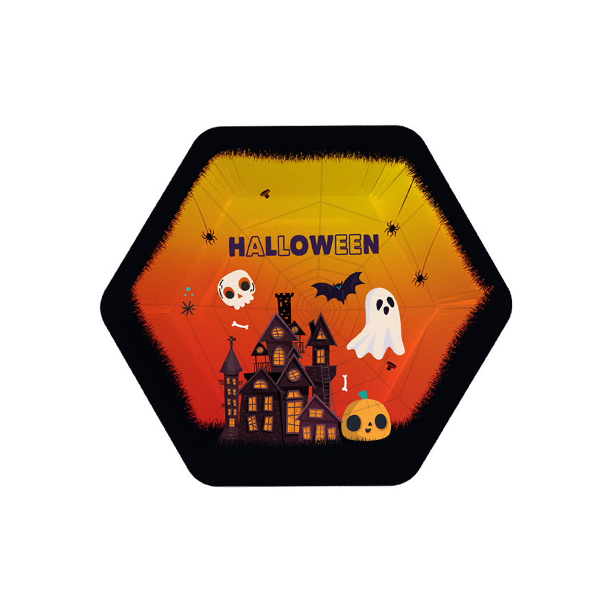 Set de 8 platos con diseño de Halloween de 17 x 19 cm. aproximadamente.