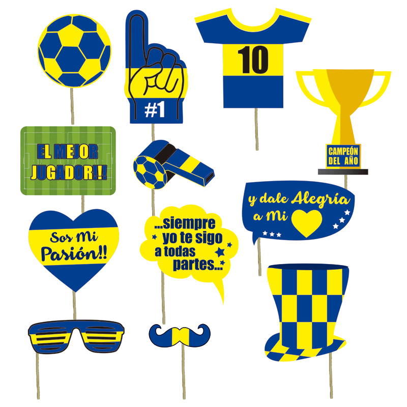 Pack de 12 unidades de palitos con frases divertidas y diseños coloridos sobre Boca Juniors.
