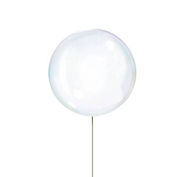 Es un globo de material plástico elástico (mucho más resistente que el látex tradicional), que al inflarse toma una forma redonda y cristalina, similar a una burbuja de jabón… ¡pero que no explota tan fácilmente!
